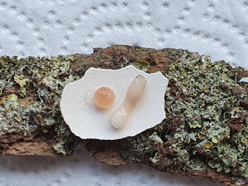 Schnecke Li ist (knapp) 4 cm groß, Körper laaang gestreckt 8,5cm+, Mantel hell schlamm farben, Häuschen eher rundlich.