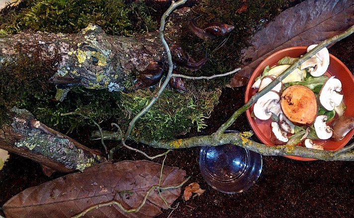 Hier eine wahre Schönheit, sie stammt von Sangmelima, südliches Kamerun. Vielen Dank an Susann. Nach langem hin und her überlegen ob ich es mit dieser doch nicht einfachen Art versuchen sollte, machte der Satz von Susann "wenn du Limis kannst, dann geht die auch" und das die F3 doch viel stabiler und nicht mehr so empfindlich ist den Ausschlag. Mein größtes Problem ist die Temperatur, da vor allem jetzt im Sommer die Temperaturen doch über 26 C liegen. Ich habe sie jetzt mit Grunzschnecken vor meiner Wohnungstür, da ist es jetzt doch noch bis 3 C kühler und momentan bei 24 C. Ich habe mir die Beiträge immer gerne von dieser Schnecke in Susann Galerie angeschaut und bereue es jetzt nicht sie genommen zu haben, mir gefällt das dunkle mit der dezenten Tüpfelzeichnung, was vor allem die Jungschnecken zeigen. Ich habe mir Susann´s Pflegetipps sehr zu Herzen genommen und viel Totfaules Holz, auch als Äste mit Moos und Flechten bewachsen, sowie Moos als Feuchtigkeitsspeicher auf dem Substrat. Sie können sich unter dem Holz und Laub verstecken, da sie Baumschnecken sind und den Boden nicht zum verbuddeln nutzen. Sie bekommen wie bei Susann zum normalen Angebot von Salat, Zucchini, Süßkartoffel, vor allem ihre Lieblingsfutter Pilze.