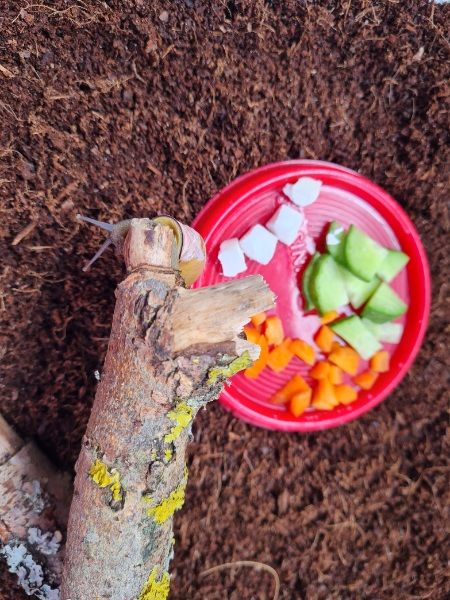 Zur Fütterung: die letzten beiden Tage hat sie nur Gurken und Wassermelone gefressen. Salat, Löwenzahn und Brennnessel rührt sie nicht an.