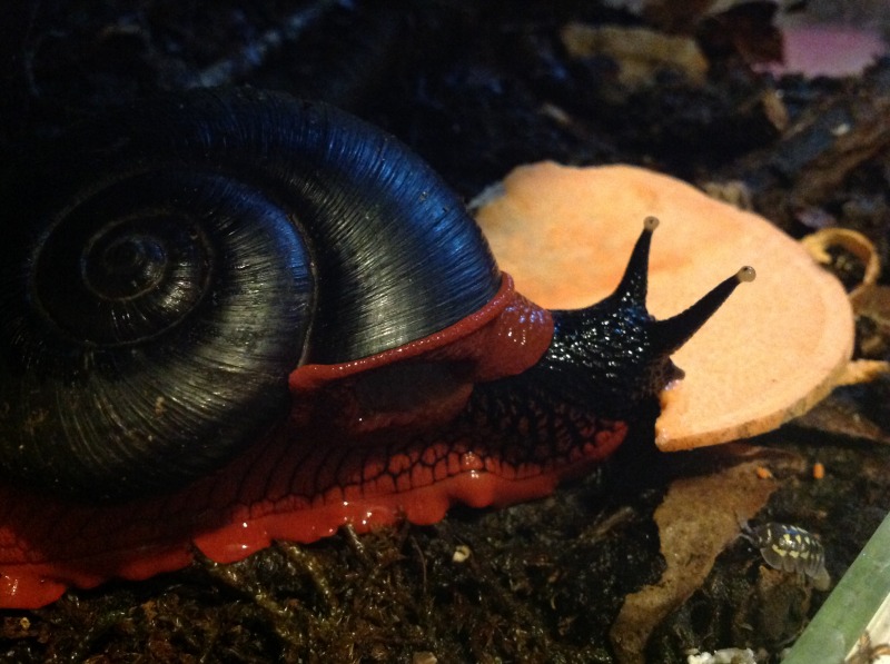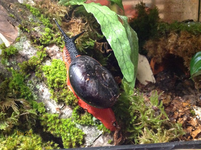 Das interessante bei der Platymma tweediei (auch -Feuerschnecke-) genannt ist, dass sich auf der oberseite der Fussspitze der Darmausgang befindet. Man konnte beobachten, dass frisch geschlüpfte Schnecken oft auf der Fusspitze der Elterntiere kleben und Kot fressen....