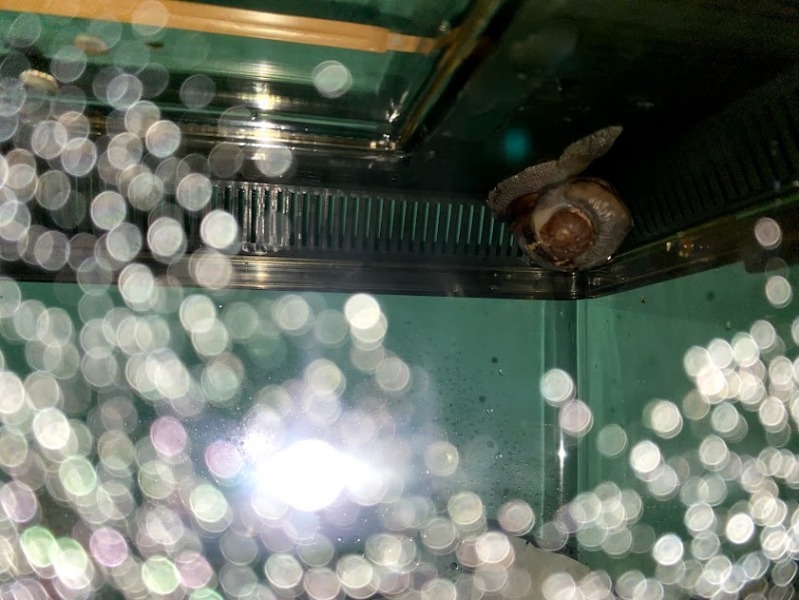 und ordentlich Pulver erwischt. Sie hat dann noch etwas den Rand erkundet und ich hab sie wieder reingesetzt, jetzt macht sie sich an die Gurke die ich an den Rand geklebt hab. Ich bin mir nicht sicher ob sich Haustechnisch schon viel getan hat, aber ich hoffe die Tatsache dass sie so aktiv und hungrig ist ist ein gutes Zeichen. Ich könnte ihr jedenfalls stundenlang zusehen