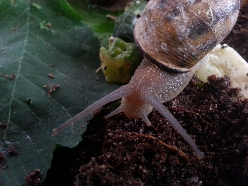 ) hat die Nacht überstanden und pappt noch immer am Deckel, bewegt sich aber nach wie vor dort hin und her. Ich kann nicht gut erkennen ob sich an dem Häuschen schon was getan hat, glaube aber dass die Haut schon etwas dicker und weniger durchsichtig geworden ist.