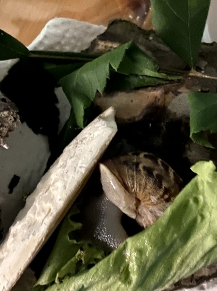 so, mal wieder ein paar Fotos um euch am Laufenden zu halten. Ich glaub die neue Einrichtung gefällt Kimmy, es ist das erste mal dass sie 1. nicht am Deckel geschlafen hat (sondern am Salatblatt) und 2. als ich abends heim kam wach war - sie knabbert wieder am Salatblatt, nachdem sie gestern gefühlt ihr Eigengewicht in Salat gefuttert hat :) Sie scheint ihr Schneckenleben grade zu genießen.