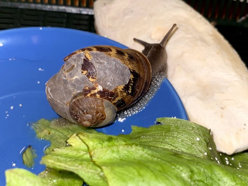 ich hab vorhin das Faunarium vom Schimmel befreit und sie inzwischen am Deckel sitzen lassen. Nach ein paar Minuten schaute der Kopf raus, jetzt knabbert sie schon eine ganze Weile am Salatblatt. Ich hab ihr außerdem eine Schüssel mit etwas Wasser zum Baden hingestellt, das interessiert sie aber momentan gar nicht, sie will nur futtern :mrgreen: schön sie so fit zu sehen. sie hat auch gleich Kot abgesetzt und mich damit erschreckt (weil plötzlich was orange-rotes schleimiges aus ihr raus kam, sie hatte ja gestern Karotte haha) und scheint einfach ihr Schneckenleben zu genießen.