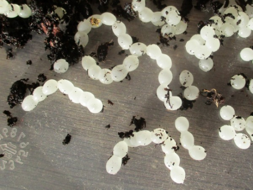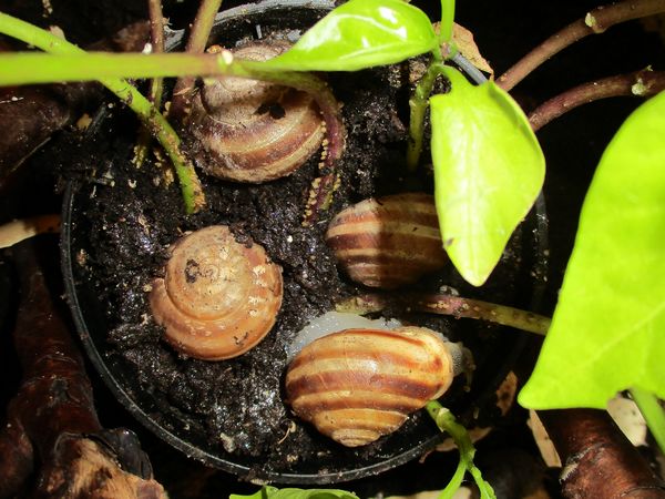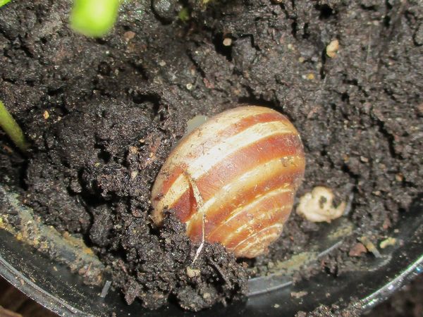 Als zwei Tage später der Topf "schneckenfrei" war, habe ich aus ihm die Pflanzen rausgeholt und wie erwartet mehrere Gelege gefunden.