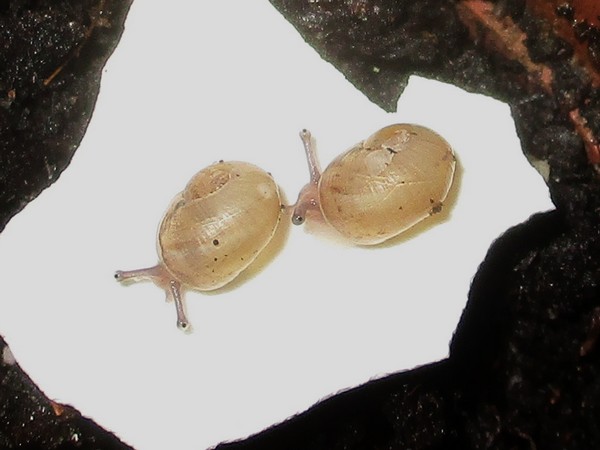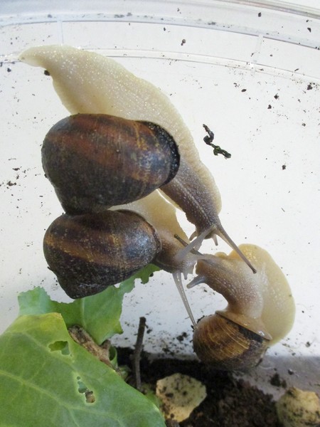 Offenbar hatten sie die Köpfe zusammengesteckt, um zu entscheiden, wer sich denn als nächstes um die Arterhaltung kümmert. Jedenfalls haben zwei von ihnen anschließend eine Menge Schleim produziert, und einen Liebespfeil sehe ich auch an der Wand kleben...