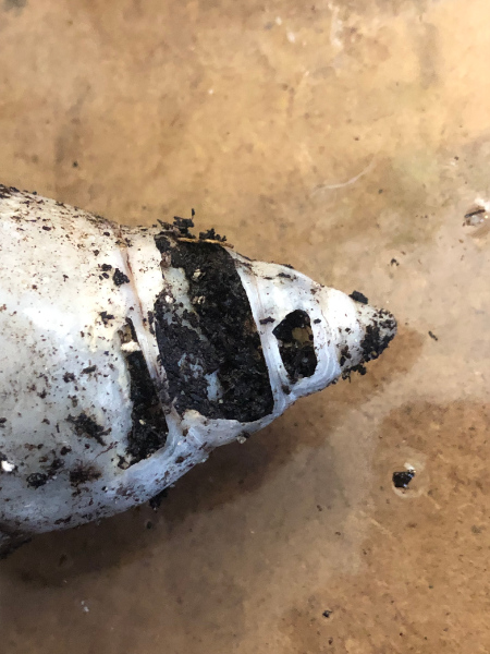 - Die Schnecken haben offensichtlich für lange Zeit zu wenig Kalk bekommen, die Färbung der Häuser beginnt erst ab gut der Hälfte.
