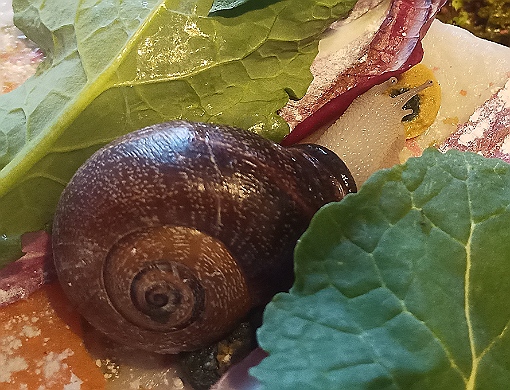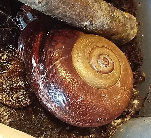 Leider bin ich jetzt auch nicht schlauer. Der Nabel ist inzwischen mit hellem Material zugewachsen, vorne an der Lippe hat alles noch die Außenfarbe, ich schätze da wird die nächste Zeit innen noch eine Schicht gebildet, die dann entweder hell oder eher schwarz ist. Hinten Richtung Nabel konnte ich gar nicht richtig gucken, da liegt der Mantel zu weit auf und sie fand es nicht witzig als ich da mit meinem Stäbchen rumgeschoben habe