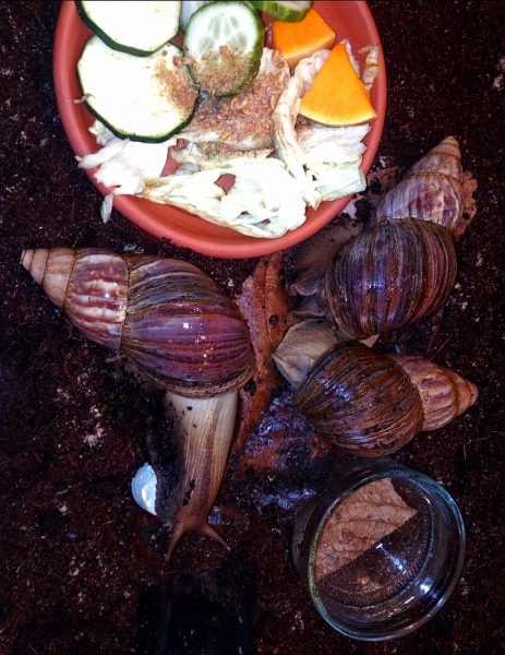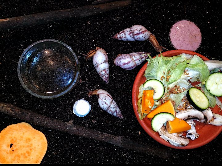 Diese Woche neu in Schneckhausen eingezogen sind Lissachatina immaculata Wildfarben. Ich habe sie aus Hobbyauflösung übernommen, noch mal Danke an Andreas.