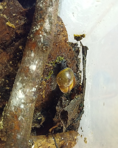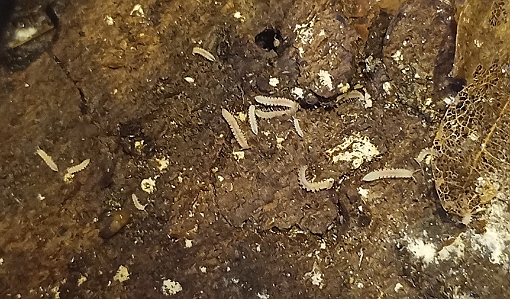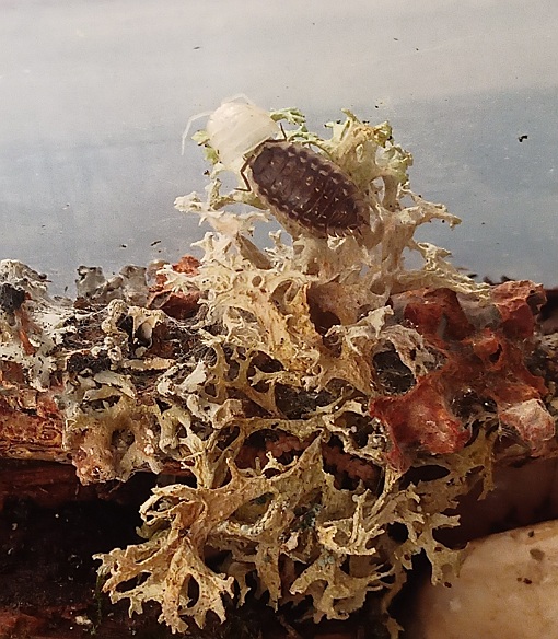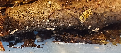 Zum Glück hatte ich mich da schon etwas genauer informiert (eigentlich um Tausendfüßer und Asseln zu halten) und so war diesmal schnell der Plan für eine hoffentlich besser funktionierende Unterbringung mit einer ordentlichen Säuberungstruppe im Boden gereift - Wald- und Kokoserde, verrottendes Laub, Moos, faules Holz, Flechtenäste, dazu Sepia als feste Kalkquelle und Futterkalk überall beigestreut.