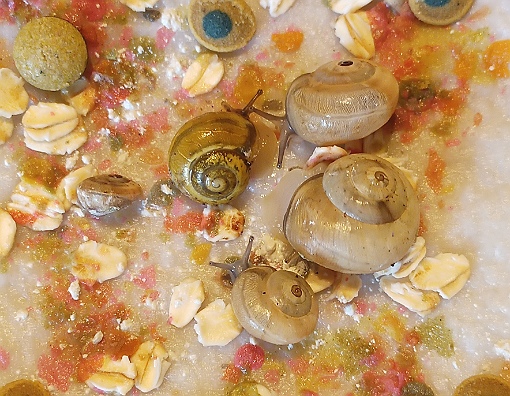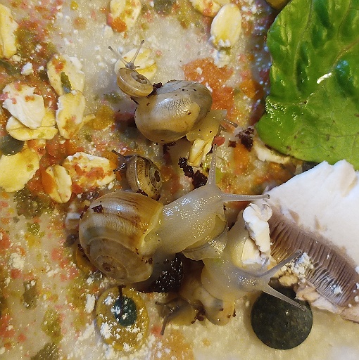 Ich hatte seit meiner Kinderzeit immer wieder Schnecken, leider bis zuletzt ohne das nötige Hintergrundwissen, so daß sie leider immer an Kalkmangel litten und die Unterbringung auf nassem Küchenpapier immer in einer ekligen, fauligen Schmiere endete. Früher hatte man mir erzählt, daß ich den Schnecken Kreide als Kalkquelle geben sollte - die auch immer gut gefressen wurde, aber die Tiere sahen trotzdem immer völlig rachitisch und fehlentwickelt aus (aber das ist nun schon 50 Jahre her....).