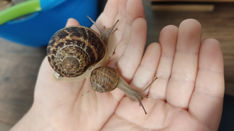 also zuerst das Schöne: Blüti ist nach wie vor topfit, futtert, kackt die Scheiben zu und sucht gerade nach einem Partner. Die anderen Schnecken sind alle nicht gelb und auch ansonsten unauffällig.
