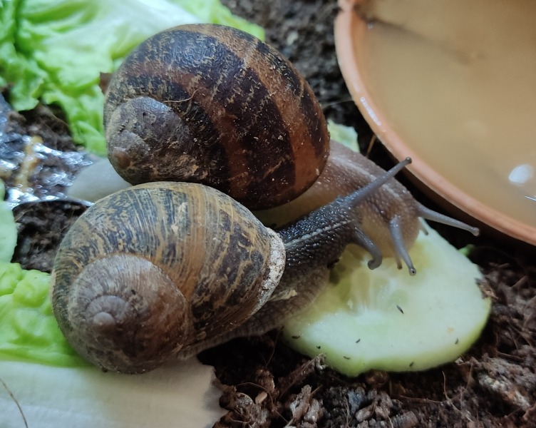 Sehr zu meiner Freude treibt der Regen draußen meine Schnecken abends früher aus dem Bett und auch morgens sind sie länger aktiv. So sind gestern ein paar schöne Fotos entstanden.