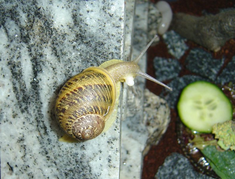 Sehr zu meiner Freude treibt der Regen draußen meine Schnecken abends früher aus dem Bett und auch morgens sind sie länger aktiv. So sind gestern ein paar schöne Fotos entstanden.