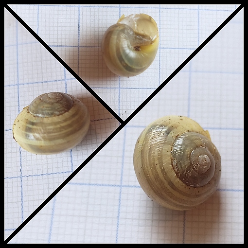 Bei den Bänderschnecken gibts auch Neuigkeiten - ich hab neulich abends ein total ausgefallenes Exemplar gefunden. Das ist wohl eigentlich eine vielfach gestreifte - aber als Hausalbino? So eine Farbe habe ich noch nie gesehen. Der Körper hat eine dunkle Zeichnung.