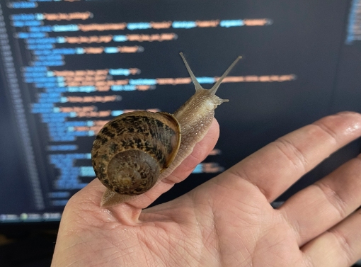 Meine Freundin hatte in dem Laden, in dem sie arbeitet, eine kleine Schnecke auf einem Prospektständer.