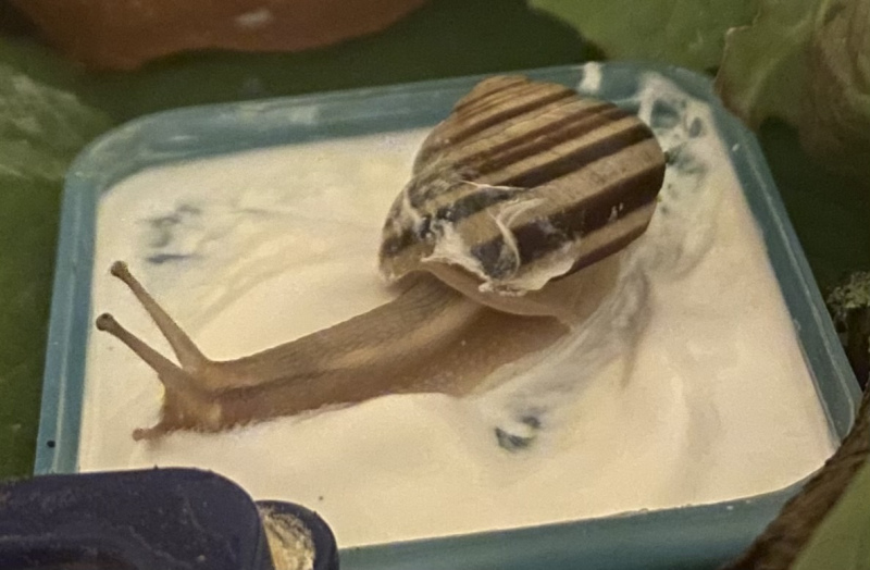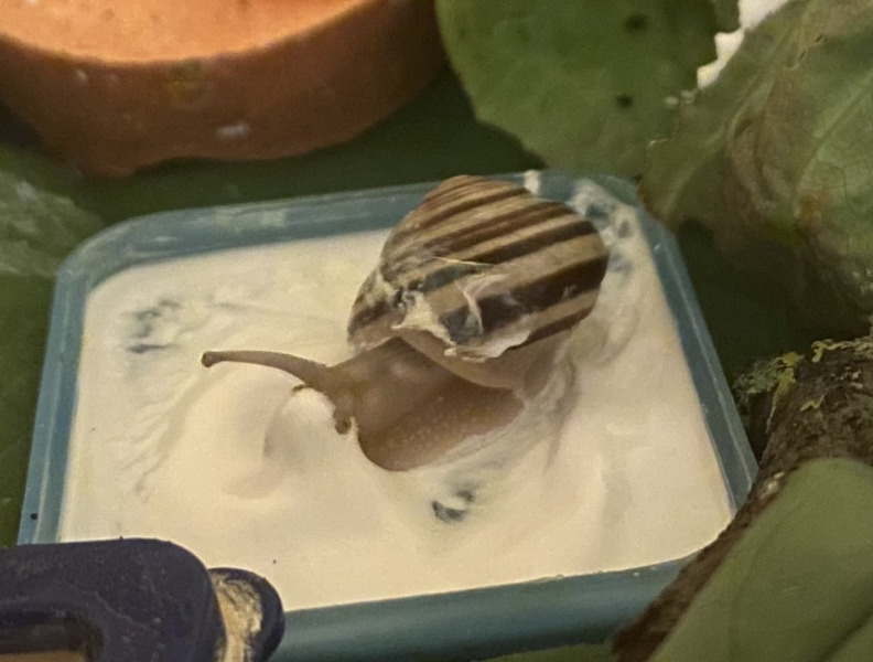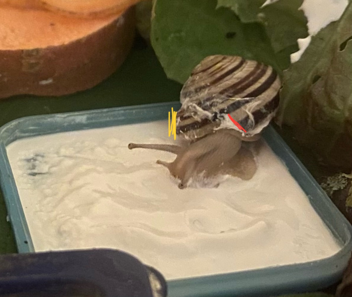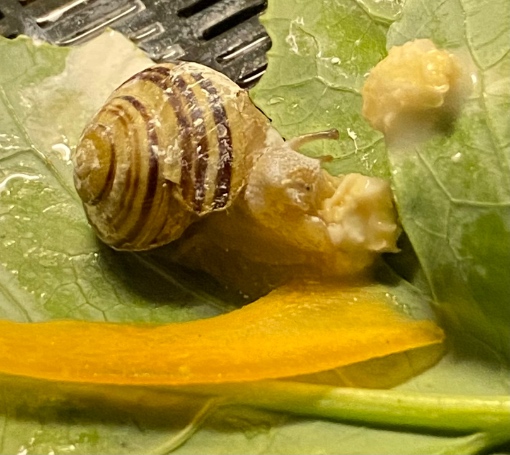 Ich hätte nicht gedacht, dass die Gehäusereparatur bei einer Bänderschnecke so gut verläuft, auch wenn der Appetit der Schnecke wohl etwas Anlass zur Sorge gab.