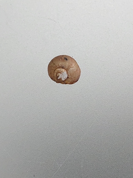 Tja, ich weiß es nicht, ob es von ihr ist oder nicht... Von der Größe her passt es perfekt, aber da sind viele Schnecken von der Größe. Komisch ist halt, ich habe die Tage alles gefegt gehabt dort, da liegt kein Dreck mehr rum. Und es lag halt direkt unterhalb der Stelle, wo sie oben rum schneckte. Trotzdem kann ja der Wind was hingeweht haben. ¯\_(ツ)_/¯ Ein anderes Haus hab ich jedenfalls weit und breit nicht gefunden.