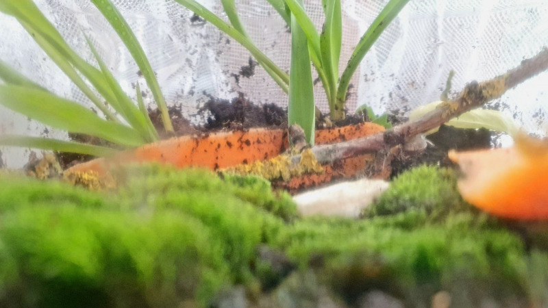 Sie bekam übergangsweise eine große Salatschüssel mit dem Nötigsten, damit ich sie erst bestimmen konnte, um ihr den besten Platz zu suchen. Suchbild in schlechter Qualität (seitlich durch das Glas der Schüssel), wo ist sie?