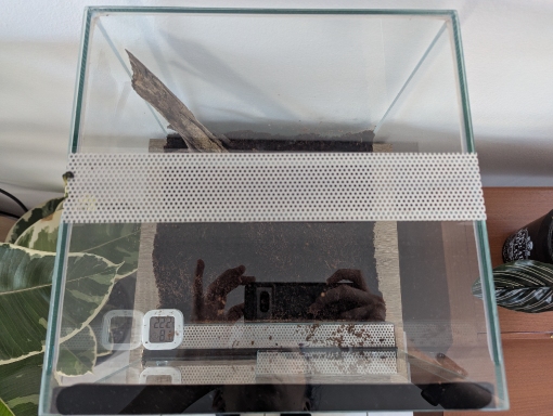 wenn es die konstruktion erlaubt, zb wenn der deckel nur mit silikon verklebt ist, könntest du den abschneiden/abmachen und einen deckel mit fliegennetz basteln für bessere belüftung.