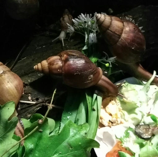 Achatina fulica und drei Achatina reticulata. Bekommen habe ich alle Schnecken unter