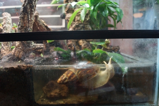 Für die Ovums hatte ich ein "Miniaquarium kleben lassen. Es stand auf dem Boden des Terrariums. Ich hatte dann Hölzer und Pflanzen in dem Becken, unten auch etwas Kies. Das Becken war so tief, dass ich eine kleine Zimmerbrunnenpumpe einstellen konnte.