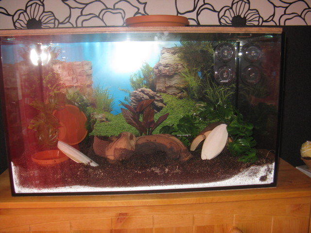 Mein Becken ist 60x30x35cm, und da sollen drei kleine Schneckchen rein, wobei ich mich auch frage ob sie sich da nicht noch ziemlich verloren drin vorkommen werden