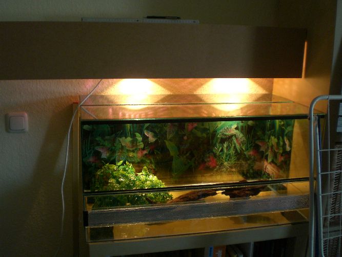 Der Bodenhorizont ist selbst ohne Foto, also in Natura, schwer auszumachen, weil ich im Aquarium gemischt habe und der Kalk nicht überall optimal verteilt ist. Einfüllhöhe liegt etwa bei 15 cm, wobei an der einen oder anderen Ecke etwas mehr liegt. Das hocgeschmadderte Silikon (nicht von mir hochgeschmaddert übrigens) reicht allein an einigen Stellen 5cm hoch. Sieht nicht schön aus, ist aber dafür dicht.
