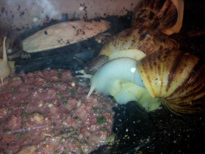 . Es handelt sich um eine hochwertige Hühner-Leckerbissen Mischung, die Marke schreibe ich nicht rein, das könnt Ihr aus dem Link ersehen. Die Mischung hat seltene Saaten, massenhaft Gammarus und Seidenraupenstückchen drin. Ich habe einfach gemahlen in der Kaffemühle, kurz überbrüht, dann mit Kalkpulver verrührt und serviert. Es schmeckt meinen Schnecks scheinbar noch besser als meine selbstgerührte Mischung. Die Mischung ist nicht billig - um die 5 Euro für 600gr Packung, habe ich im Internet gesehen, aber es reicht bestimmt sehr lange und die Größe ist wirklich handlich für Schneckenhalter, denn bei 3 oder 5 kg hätte ich mehr Probleme mit der sinnvollen Aufbewahrung.