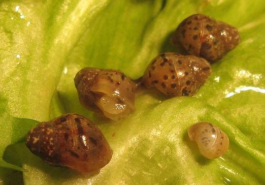 Nun habe ich eine Achatschnecke auf kuriose Weise bekommen: Ich mache gerade ein freiwilliges Praktikum beim Naturkundemuseum und hatte die Aufgabe, alte Achatschneckenterrarien zu durchwühlen und zu säubern. Die alten Terrarien waren ein Gräuel, sie hatten toten, stinkenden Matsch als Untergrund, in dem ich mehrere tote adulte Schnecken geborgen habe. Die Terrarien waren außerdem voller winziger weißer Insekten oder Milben sowie Fruchtfliegen, die sich auf den vergammelten schimmelnden Obstresten einen Brutplatz erhofften. Im Matsch war noch ein altes Gelege, die Eier waren gelb und tot.