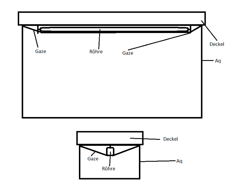 Leuchtstoffröhren werden relativ zügig sehr heiß, ich würde sie keinesfalls so verwenden, dass die Schnecken direkt mit den Röhren in Berührung kommen können wenn die Röhren über eine Zeitschaltuhr gesteuert werden. Es kann bei deiner Variante passieren, dass eine Schnecken sich über Nacht die Röhre für ihr Tagesquartier aussucht und sich dann morgens, wenn die Röhre angeht, den Fuß verbrennt.