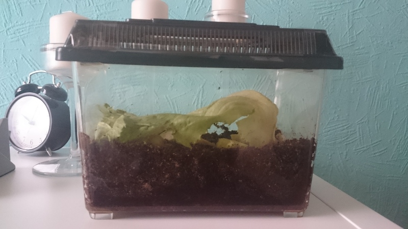 ....und da beginnt auch schon meine Frage: Wie bekomme ich eine gute Luftfeuchtigkeit in solch eine Box? Der Deckel ist ja voll mit Luftlöchern. Ich habe schon die Seiten abgeklebt, trotzdem kommt es mir die Luftfeuchtigkeit nicht hoch genug vor.