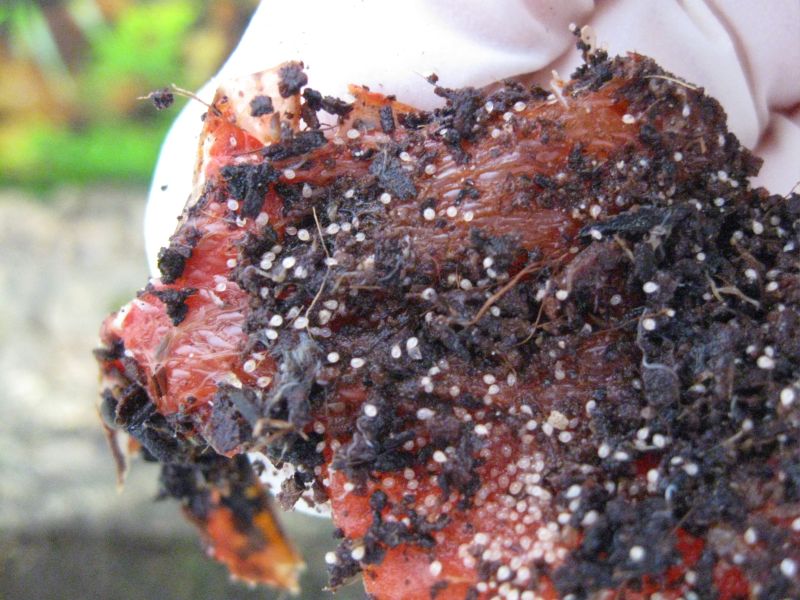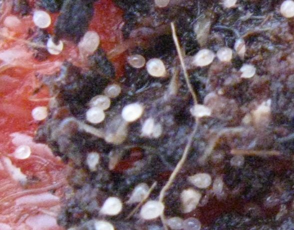 die Dingelchen sind winzig (>1mm) und waren an der Paprika und an den Avocado-Schalen (die waren als mini-Verstecke drin, komplett abgenagt, also nicht schimmelig oder gammelig)
