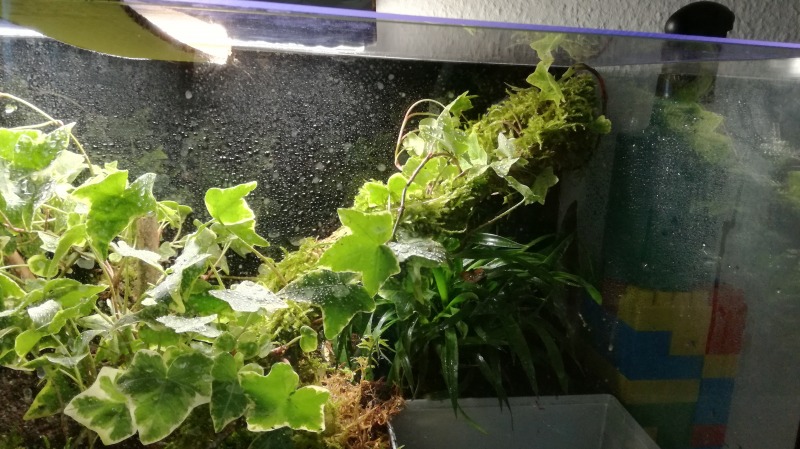 Ausgestattet ist es mit Terrarienerde die mit Gartenkalk aufgekalkt wurde.