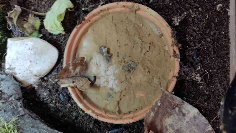 Meine Cornus interessieren sich nicht die Bohne für eine normale Wasserschale, aber das Heilerdebad lieben sie. Ich habe daher immer einen kleinen Untersetzer mit Wasser und Heilerde. Den fülle ich fast täglich nach, denn morgens ist er häufig leer. Keine Ahnung was die Schnecken nachts mit dem Wasser machen, morgens ist er oft leer. Ob sie es trinken oder verkippen?