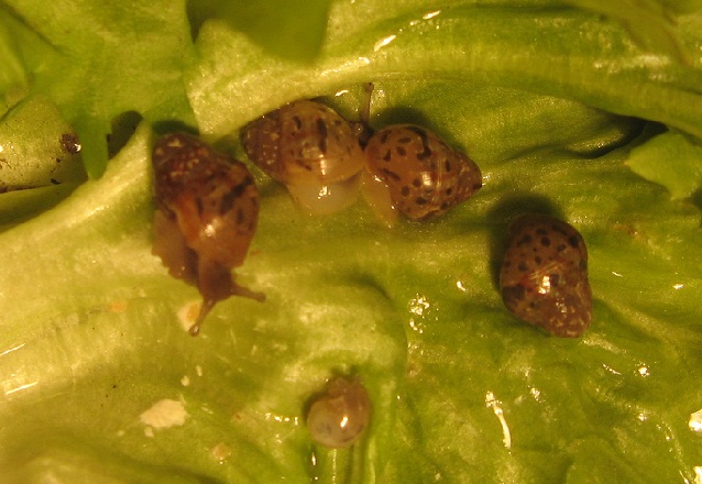 Nun habe ich eine Achatschnecke auf kuriose Weise bekommen: Ich mache gerade ein freiwilliges Praktikum beim Naturkundemuseum und hatte die Aufgabe, alte Achatschneckenterrarien zu durchwühlen und zu säubern. Die alten Terrarien waren ein Gräuel, sie hatten toten, stinkenden Matsch als Untergrund, in dem ich mehrere tote adulte Schnecken geborgen habe. Die Terrarien waren außerdem voller winziger weißer Insekten oder Milben sowie Fruchtfliegen, die sich auf den vergammelten schimmelnden Obstresten einen Brutplatz erhofften. Im Matsch war noch ein altes Gelege, die Eier waren gelb und tot.