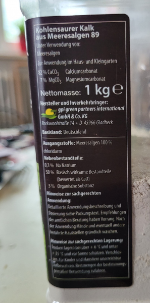 zur Ersteinrichtung habe ich keinen Kalk im Baumarkt in der Nähe gefunden und habe das edle Pulver aus der Terrarienabteilung gekauft, als Notlösung.