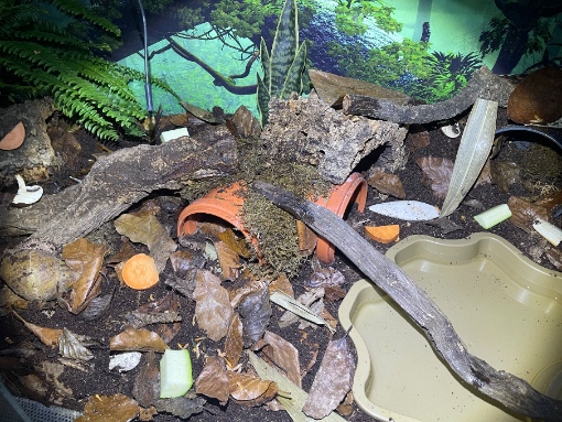 Hey, ich habe mein Terrarium mittlerweile seit einigen Monaten in Betrieb und habe die Inneneinrichtung nach und nach perfektioniert, damit meine Ovums sich wohl fühlen. Ich wollte einfach mal ein paar Bilder davon teilen, nach dem sich alles eingependelt hat, vielleicht hat ein erfahrener Halter unter euch ja weitere Verbesserungsvorschläge oder ich inspiriere jemanden der neu dabei ist - ich fand es nämlich selbst total schwierig Inspiration im Internet mit Bildern zu finden die für Anfänger und mit begrenztem Budget artgerecht möglich ist.