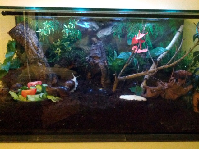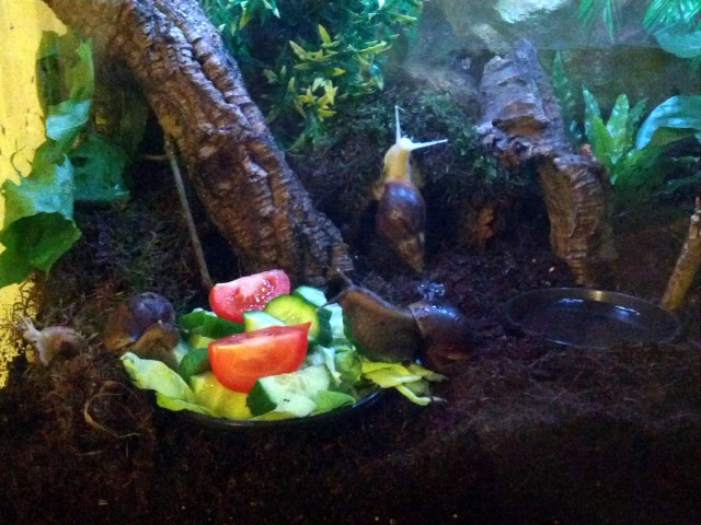 Ich habe in Ulm eine supersüße VA fulica gefunden, die ich natürlich sofort mitnehmen musste. Sie ist schätzungsweise 2 Monate alt und hat schon rausgefunden, wie toll es ist von den Großen durch die Gegend getragen zu werden.Was mich gestern total überrascht hat war, dass meine Snow White tatsächlich Annäherungsversuche an meine dicke Berta gestartet hat! Da habe ich doch tatsächlich hinten am Kopf was zum Schneckseln hervorkommen sehen! Und ich hatte gehofft, dass das hat noch ein paar Monate Zeit hat ^^ Die "Großen" sind ja jetzt auch erst 4,5 Monate alt. Die dicke Berta hat sich recht unbeeindruckt gezeigt, von daher muss Snow White ihre Avancen wohl noch ein bisschen fortführen.