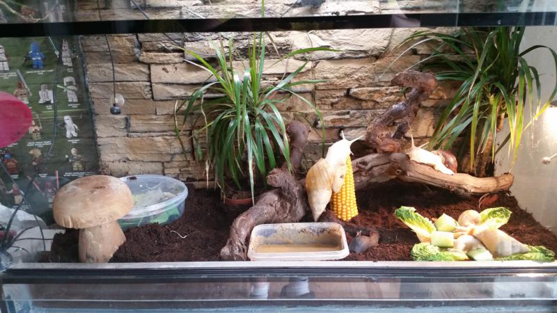 Heute habe ich frischen Löwenzahn aus dem Garten ins Terra geplanzt, mal sehen wie es Morgen aussieht. John hat sich gleich um die Neue Einrichtung gekümmert. Paul hat gleich das frische Wasser genutzt und etwas getrunken. Schnecken sind einfach sehr schöne Tiere.