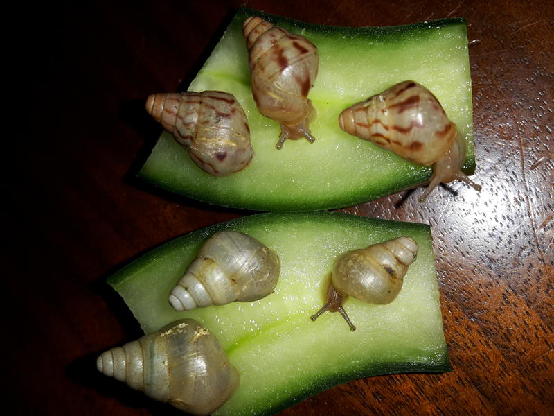 Bei mir leben 6 Achatina Reticulata ( alle Körperalbino)