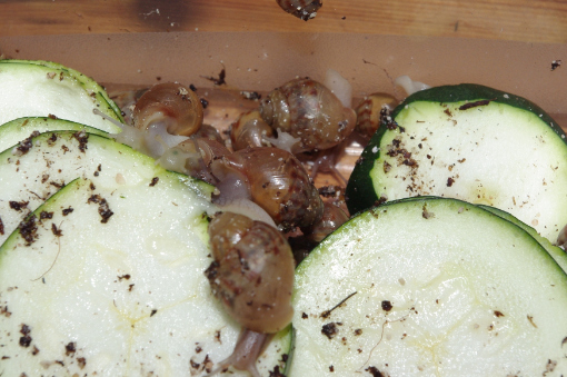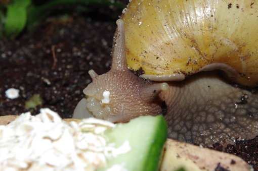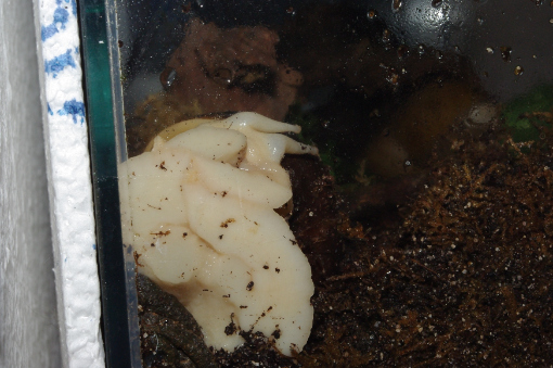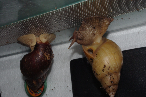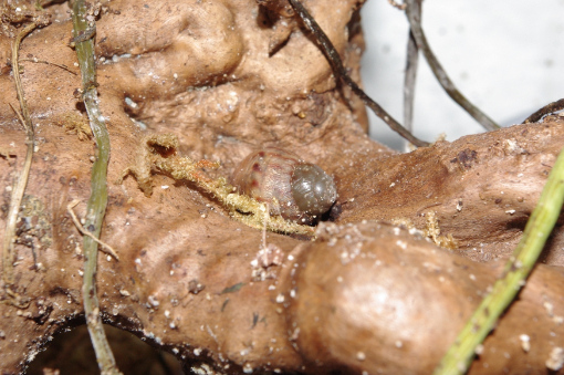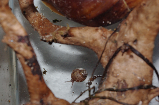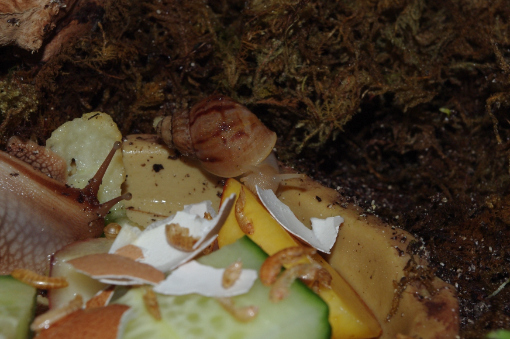 Als ich die eine sah, hab ich mich so erschreckt, dass ich spontan das Terrarium umgegraben habe. Dabei kam dann noch eine ganz frische Schnecke zum Vorschein. Und ein ganz neues Gelege, das hab ich dann auch gleich entfernt...