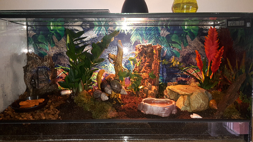 Das Terrarium sieht sehr gut eingerichtet aus. Und wenn ich das richtig sehe, ist der Boden aufgekalkt - stimmt das?