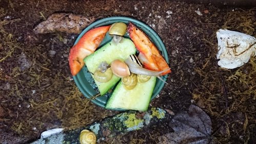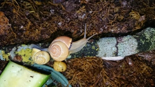 Die rosane Schnecke ist gewachsen und echt einiges grösser als ihre Freunde! Ich staune immer wie gross sie ist.