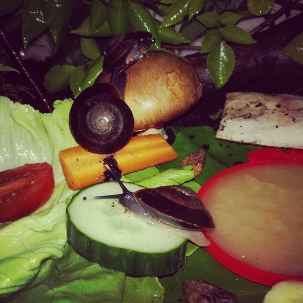 Vor einem guten Jahr sind zuerst Norma (Albino, gelbes Haus) und Norman (der Winzling im Futter) eingezogen. Sie stammen aus wahrscheinlich nicht ganz so guter Haltung und hatten schon leichte Häuschenschäden bei der Ankunft, und 3 Wochen später wären sie mir bei der Hitzewelle fast gestorben. Norma's Häuschen war schon fast leer und ich hätte nicht gedacht dass sie sich erholt, aber Heilerde, Thymiantee, Kokosöl und viel kühles Laub hatten dann scheinbar doch geholfen. Seitdem wachsen sie allerdings nicht mehr so schön und besonders der kleine Norman hat einen Baufehler den er nicht korrigiert bekommt, er ist trotzdem munter, aktiv, frisst, hat teilweise aber einen leichten Mantelvorfall wenn er zuviel frisst..Ich überlege nun ob ich nicht mal zum Exoten Tierarzt fahre und die eine Idee haben wie man ihm helfen könnte. Ich bekam schon den Tipp dass man es evtl mit einer chirurgischen Feile korrigieren könnte.