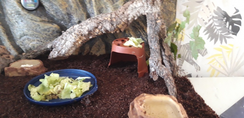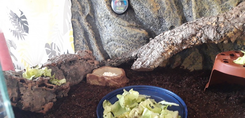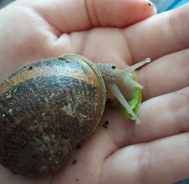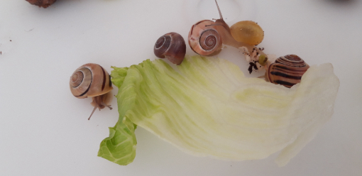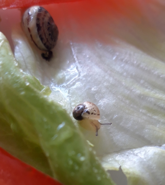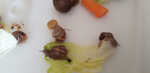 Im Moment habe ich 6 Cornu aspersum maximum in einem 60×45×30 Terra und 5 Cepaea nemoralis und hortensis (Bänderschnecken) mit zwei Weinbergschnecken-Jungtieren vorübergehend in einem 30×30×30