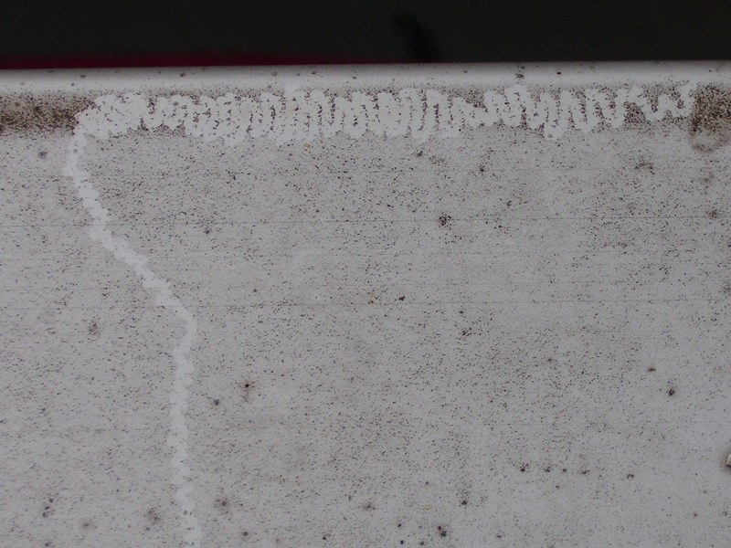 Da sind ihre Spuren draussen an der Aussenmauer. Klar, das sind Flechten ! Auch da hab ich nicht geschaltet.