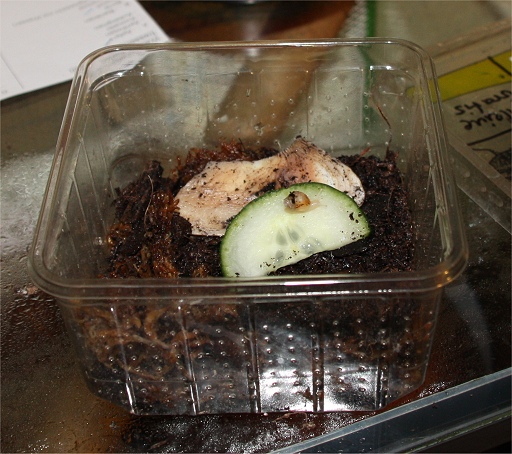 Seit letztem Samstag haben wir Neuankömmlinge. Eigentlich vier VA von einer Halterin aus Marburg. Zwei sind schon etwas größer, aber die beiden anderen sind sehr klein. Bei der einen denke ich nicht, dass sie durchkommt. Die Kleinen stehen auch im Becken, aber in einer Heimchendose, damit ich besser kontrollieren kann.