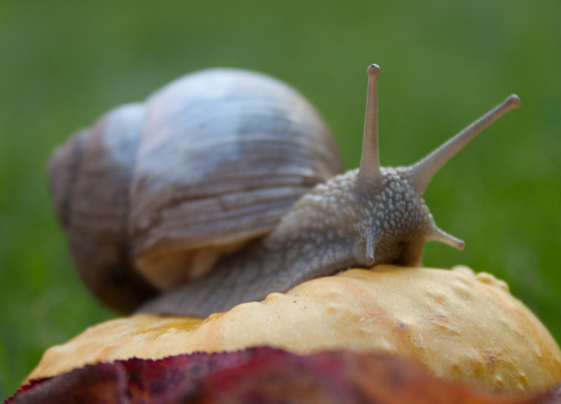 Und hier ein Weinbergschneckenbild. Sie kroch zufällig an unserem Gartenteich entlang:
