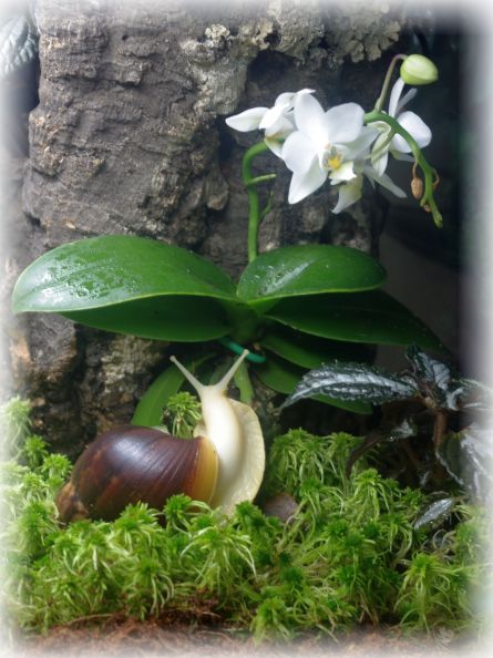 Dass deine Schnecken die Orchidee gefressen haben, wundert mich nicht. Meine fressen auch nahezu alle Pflanzen. Drachenbäumchen und Bromelien sind bisher die einzigen Pflanzen, die nicht aufgefressen, sondern höchstens angeknabbert wurden. So einen Farn, wie du ihn vorne links im Terra hast, hatte ich auch mal. Den musste ich aber nach einer Woche vor den Schnecken retten, weil er schon schlimm angefressen war. Seitdem lebt er bei uns als Zimmerpflanze